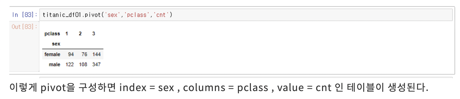 데이터 프레임에서 두 개의 열을 이용하여 행/열 인덱스 reshape된 테이블을 의미한다